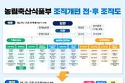 뉴스포원(NEWSFOR1) 윤경덕 기자 | 농림축산식품부는 농정을 혁신하고 국민주권정부의 농정 비전인 ‘국민과 함께하는 농업, 희망을 실현하는 농촌’ 조기 구현을 뒷받침하기 위해 조직을 확대․개편한다. 농식품부는 이번 조직 개편을 통해 1관 신설, 1국(관) 대체 신설, 21명 증원함으로써 기존 3실, 2국‧12관, 59과‧팀에서 3실, 3국‧12관, 62과‧팀 체계로 확대되며, 2017년 방역정책국 신설(순증), 2022년 동물복지환경정책관 신설(대체신설) 이후 3년여 만에 대규모 조직개편을 단행하게 됐으며, 세부 내용은 다음과 같다. ❶ 농어촌 기본소득, 농촌 에너지 전환을 전담하는 ‘농촌소득에너지정책관’(국장급)을 신설한다. 신설되는 농촌소득에너지정책관에 기존 공익직불정책과‧재해보험정책과‧농촌탄소중립정책과를 이관하면서, 과 명칭을 변경하고 2개 팀을 신설하여 농촌소득정책과‧농업정책보험과‧농촌에너지정책과‧농업재해지원팀‧농촌탄소중립추진팀으로 확대‧개편한다. 이를 통해 소멸 위기 농어촌 지역의 활력을 제고하기 위한 농어촌 기본소득 시범사업과 농촌의 재생에너지 확산을 위한 햇빛소득마을 조성, 영농형