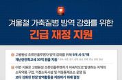 뉴스포원(NEWSFOR1) 편집국 기자 | 겨울철 가축질병 방역 강화를 위한 긴급 재정 지원 - 고병원성 조류인플루엔자 방역 강화를 위해 9개 시·도*에 재난안전특교세 30억 원을 지원 *광주, 세종, 경기, 충북, 충남, 전북, 전남, 경북, 경남 - 이번 지원은 고병원성 조류인플루엔자가 지속적으로 발생하는 지역의 소독약품 구입, 거점소독시설 및 이동통제초소 운영 등 보다 강화된 현장 방역활동을 지원하기 위해 결정 - 행안부는 지난해 11월 24일에 14개 시·도에 고병원성 조류인플루엔자 확산 방지를 위한 재난안전특교세 50억 원을 지원했으며 이번까지 포함하면 총 80억 원을 지원