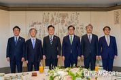 뉴스포원(NEWSFOR1) 윤경덕 기자 | 3일 이재명 대통령과 5부 요인의 오찬은 1시간 40분 동안 화기애애한 분위기 속에 진행됐다. 본격적인 환담에 앞서 우원식 국회의장이 빛의 혁명 1년을 기리는, 아주 특별한 기념패를 이재명 대통령에게 전달했다. 기념패는 계엄군이 국회에 난입하는 과정에서 부숴진 목재 집기를 활용해 만들었습니다. 기념패의 제목은 '빛의 민주주의, 꺼지지 않는 기억패' 이다. 대통령과 5부 요인은 환담에서 빛의 혁명 1년을 맞아 우리 시민들의 힘으로 비상계엄을 막아낼 수 있었다는 데 의견을 함께 했다. 특히 이재명 대통령은 "우리 시민사회에 축적된 문화적 역량이 민주주의를 지켜내는 저항의 힘이 됐다"고 평가했다. 본격적인 환담에서 김상환 헌법재판소장은 "비상계엄 사태 이후 헌법재판소에 헌법교육 요청이 밀려들고 있다"면서 "이참에 헌법교육 인력과 지원을 확충할 필요가 있다"고 말했다. 노태악 중앙선거관리위원장은 비상계엄의 단초가 된 부정선거론을 극복하기 위해 선거교육을 강화해야 한다고 말했다. 이에 이재명 대통령은 "민주주의 기본이 헌법과 선
