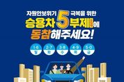 뉴스포원(NEWSFOR1) 편집국 기자 | ■ 자원안보위기 극복을 위한 승용차 5부제(요일제)에 동참해주세요! - 1.6 월 - 2.7 화 - 3.8 수 - 4.9 목 - 5.0 금 ■ 승용차 5부제(요일제) 실천을 위한 국민행동 · 유연근무 활성화하기 · 출퇴근 시 카풀 활성화하기 · 대중교통 이용하기 · 가까운 거리는 걷거나 자전거 타기