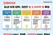 뉴스포원(NEWSFOR1) 윤경덕 기자 | 강원특별자치도는 3월 5일 오전 10시 도청에서 도내 15개 대학 및 강원RISE센터와 함께 ‘강원RISE 운영 간담회’를 개최했다. - 이날 간담회에는 김진태 지사를 비롯해 강원인재원장, 도내 15개 참여 대학, 강원RISE센터장 등이 참석해 그간의 추진 경과를 공유하고 2026년 추진방향과 사업의 안정적 운영 방안을 논의했다. RISE(지역혁신중심 대학지원체계)는 기존 교육부 중심으로 운영되던 대학 재정지원 사업을 2025년부터 지역 주도로 전환해, 지역발전 전략과 대학 지원을 연계함으로써 지역과 대학의 동반 성장을 추진하는 사업이다. 강원 RISE는 도내 15개 대학을 대상으로 5년간 총 5,000억 원이 투입되는 대규모 사업으로, 2025년 시행계획 수립과 수행대학 선정, 사전 컨설팅을 거쳐 하반기부터 본격적인 과제 수해에 들어갔다. - 현재 107개 과제가 추진되고 있으며, 2025년 998억 원 2026년 1,083억 원이 지원된다. - 도는 ▲강원 전략산업 육성 1,788억 원 ▲지역 정주형 인재양성 1,414억 원 ▲강원 스타트업 허브 조성 580억 원 ▲강원형 직업‧평생교육 체계 구축 526억 원 ▲