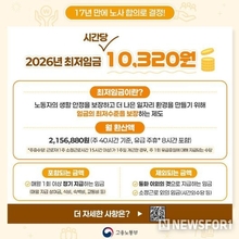 고용노동부, 2026년 시간당 최저임금 10,320원