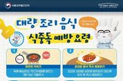 뉴스포원(NEWSFOR1) 편집국 기자 | ■ 대량 조리 음식 식중독 예방요령 ① 완전히 익히기 육류 중심온도 75°C(어패류 85°C) 1분 이상 가열하기 ② 조리된 음식 즉시 제공하기 조리된 상태로 상온에 방치되지 않도록 조리 후 즉시 제공하기 ③ 가열 조리 후 신속히 냉각하기 가열 조리 후 즉시 섭취하지 않을 시, 여러 용기로 나누어 담거나 신속히 냉각하기 ④ 보관온도 유지하기 따뜻한 음식은 60°C 이상, 차가운 음식은 5°C 이하로 보관하기 ⑤ 재가열하여 섭취하기 보관된 음식 섭취 시, 충분히 가열 후 섭취하기 ■ 운반 시 식중독 예방 요령 · 차량·운반기구 청결히 관리하기 - 오염되기 쉬운 곳 세척·소독하고 청결 상태 수시로 확인하기 · 운반 시 음식 온도 관리 주의 - 따뜻한 음식과 차가운 음식이 서로 닿지 않게 구분하기 · 안전하게 포장하기 - 음식이 새거나 오염되지 않도록 완전히 밀폐되게 포장하기 · 운반 후 즉시 제공하기 - 음식 운반이 완료되면 즉시 제공하기