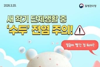 뉴스포원(NEWSFOR1) 편집국 기자 | ■ 새 학기 단체생활 중 '수두' 전염 주의!! "얼굴에 빨간 점 뭐야?" 새 학기 단체생활이 늘어나면서 어린이집과 유치원, 학교에서 수두가 집단 발생하고 있어! "나 수두인 것 같아!" 수두는 보통 14~16일 잠복기 후 미열과 발진, 무기력함, 물집이 나타나! "긁적 몸이 간지러워…" "수두인가?" · 주요 증상 - 미열, 발진, 무기력함, 물집 수두는 물집에 직접 접촉하거나 기침이나 재채기로 전염될 수 있으니, 단체생활 시 주의가 필요해! "수두, 어떻게 전염될까?" · 감염 경로 - 물집과 직접 접촉 - 기침·재채기를 통한 호흡기 전파 수두는 대부분 자연 회복되지만 예방접종이 가장 효과적인 예방법이고, 등원·등교를 하지 않는 것이 중요해! 수두, 예방접종으로 미리 예방하자구! · 접종대상 및 시기 - 소아의 경우, 12~15개월에 수두 백신 1회 접종 * 13세 이상 미접종자는 4~8주 간격 2회 접종 - 성인의 경우, 4~8주 간격 2회 접종 수두가 의심되면? 등원·등교는 NO! 병원은 GO!