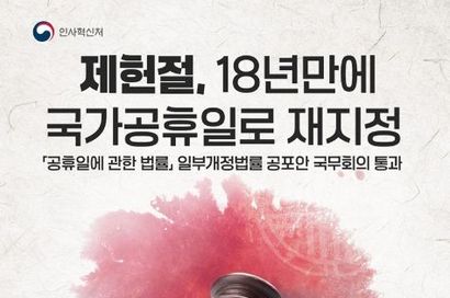 뉴스포원(NEWSFOR1) 편집국 기자 | ■ 제헌절, 18년 만에 국가공휴일로 재지정 「공휴일에 관한 법률」 일부개정법률 공포안 국무회…