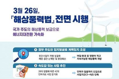 뉴스포원(NEWSFOR1) 편집국 기자 | ■ 3월 26일, 「해상풍력법」 전면 시행 국가 주도의 해상풍력 보급으로 에너지 대전환 가속화…
