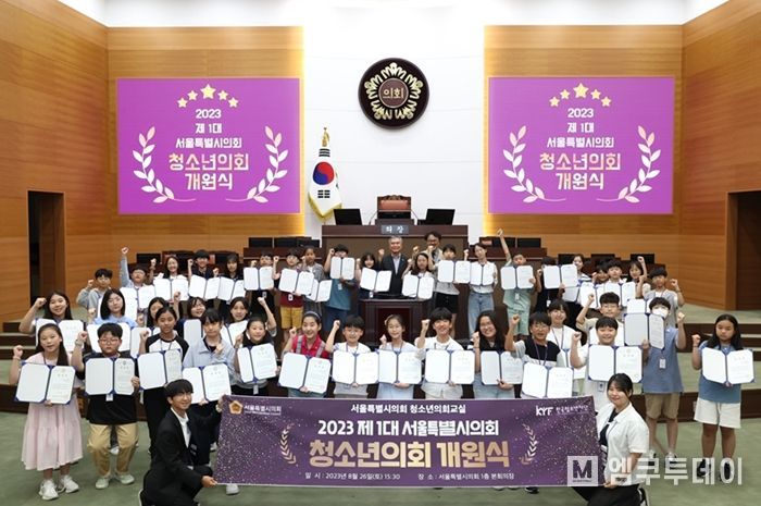 엠쿠투데이 편집국 기자 | 서울특별시의회는 26일 제1대 서울특별시 청소년 시의원 개원식을 개최했다. 김현기 의장은 당선된 초등학교 5·6학년 42명의 청소년 시의원들에게 당선증과 의원배지를 배부했다.