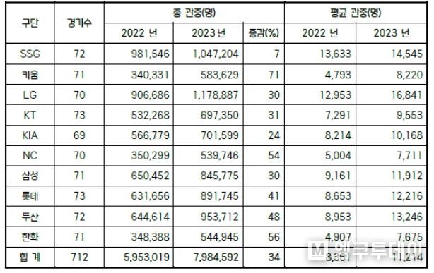 엠쿠투데이 편집국 기자 | 2023 신한은행 SOL KBO 리그가 역대 4번째, 2018시즌 이후 5년만에 800만 관중 돌파를 눈 앞에 두고 있다.