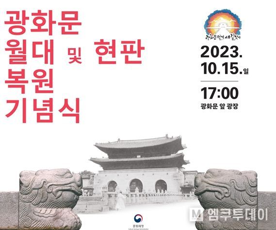 엠쿠투데이 편집국 기자 | 서울시와 문화재청은 오는 15일 '광화문 월대 새길맞이' 행사를 개최해 광화문 월대 및 주변부 광장을 공개하고 광화문광장 재구조화 사업을 마무리한다고 밝혔다.
