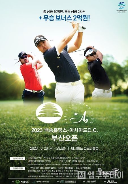 2023 시즌 KPGA 코리안투어 20번째 대회로 열리는 ‘백송홀딩스-아시아드CC 부산오픈’은 26일부터 29일까지 나흘간 부산 기장 소재 아시아드CC 파인, 레이크 코스(파71. 7,103야드)에서 펼쳐진다. 총상금 10억 원, 우승상금 2억 원 규모로 108명의 선수가 출전한다. 우승자에게는 투어 시드 2년과 제네시스 포인트 1,000포인트가 주어진다.