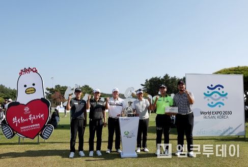 선수들은 부산시를 상징하는 캐릭터 ‘부기’, 우승 트로피와 함께 ‘2030 부산 세계박람회’의 유치를 기원하며 다양한 포즈를 취했다.