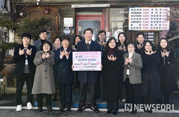 원강수 원주시장을 비롯한 시 공무원들은 설 명절을 앞둔 15일 중앙동 연두순방을 마친 뒤, 관내 골목식당에서 점심식사를 하며 골목상권 살리기에 앞장섰다.