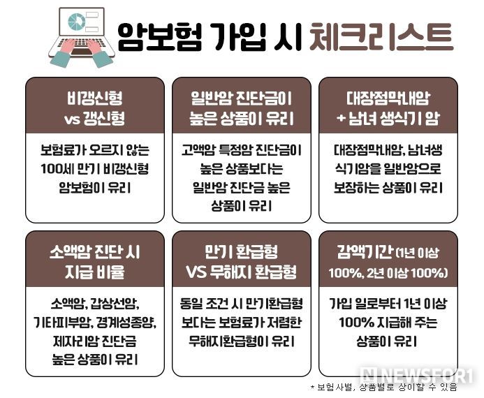 우선, 암보험을 가입하기 위해서는 갱신형 상품과 비갱신형 상품중에서 선택을 해야 한다. 갱신형은 처음 가입 시에는 보험료가 상대적으로 저렴하지만 갱신을 이어가면서 보험료가 계속 인상될 수 있고, 비갱신형은 초기 보험료는 갱신형보다 높을 수 있지만, 가입 후에 보험료인상이 없어 안정적으로 유지관리가 가능한 장점이 있다. 따라서 이러한 장단점을 고려하여 본인의 상황에 맞게 선택하는 것이 좋다.