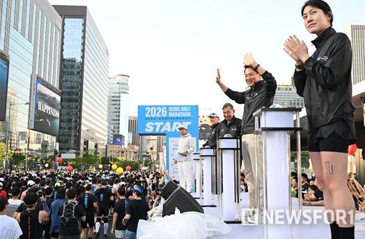 뉴스포원(NEWSFOR1) 편집국 기자 | 오세훈 서울시장은 26일 오전 광화문광장에서 열린 ‘2026 서울하프마라톤대회' 출발식에서 참가자들을 응원하고 안전한 완주를 당부했다.