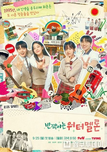 오는 25일(월) 첫 방송될 tvN 새 월화드라마 ‘반짝이는 워터멜론’(극본 진수완, 연출 손정현, 유범상, 기획 스튜디오드래곤, 제작 팬엔터테인먼트)이 1995년에서 만난 21세기 청춘 은결(려운 분)과 20세기 청춘들의 발랄한 포즈가 담긴 ‘반짝이는 1995, 청춘 포스터’를 공개, 모두의 인생을 송두리째 뒤흔들 만남을 예고하고 있다.