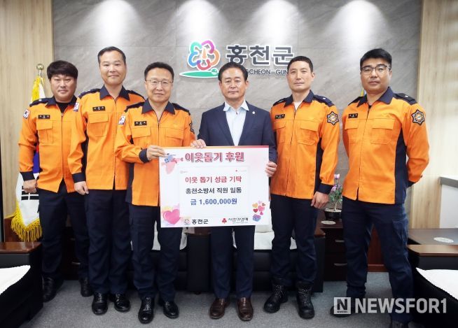 뉴스포원(NEWSFOR1) 윤경덕 기자 | 홍천소방서 직원 일동은 10월 15일 홍천군청에 방문하여 이웃돕기 성금 160만 원을 맡겼다.