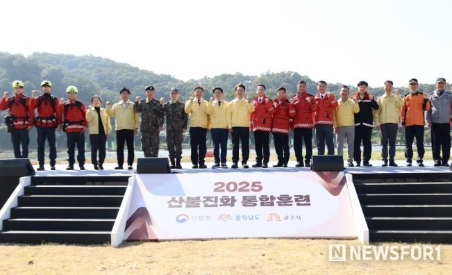 뉴스포원(NEWSFOR1) 윤경덕 기자 | 김민석 국무총리는 10월 22일 오전, 충남 공주에서 산림청, 행정안전부, 국방부, 소방청 및 충남도, 공주시 등 관계기관이 참여한 「2025년 산불진화 통합훈련」을 참관했다.