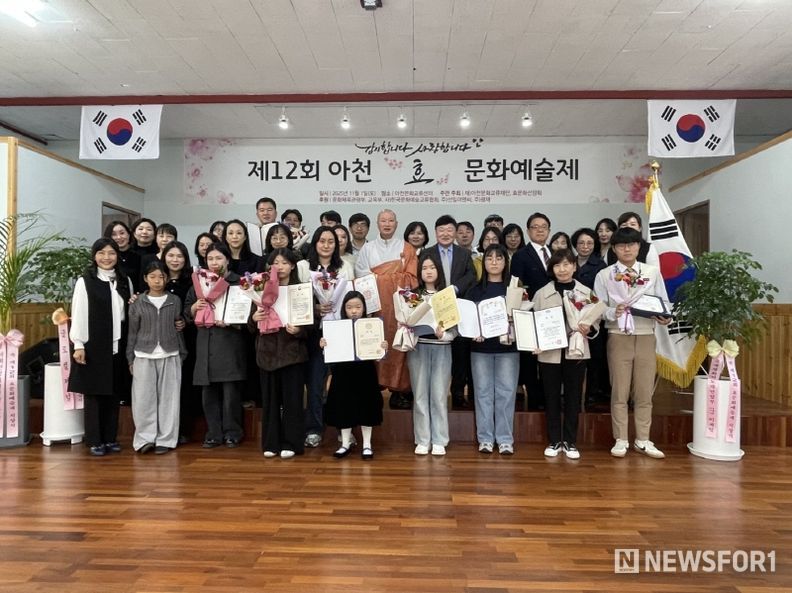 뉴스포원(NEWSFOR1) 윤경덕 기자 | 재단법인 아천문화교류재단(ACEF)이 주최-주관한 '제12회 아천효문화예술제’가 11월 1일 오후3시 아천문화교류센터에서 시상식이 개최됐다. 이날 행사에는 부모사랑 나라사랑의 올바른 가치관을 심어주기 위해 문화예술 부문의 우수한 인재들을 발굴 시상하고 올해로 12회를 맞았다.