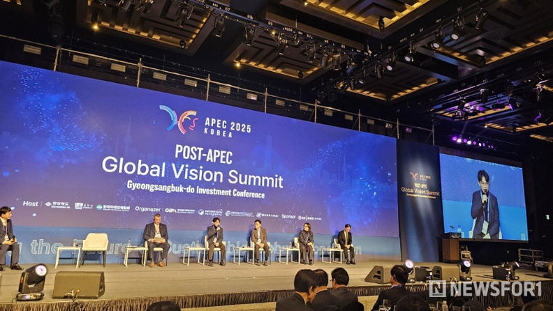 뉴스포원(NEWSFOR1) 윤경덕 기자 | 27일 개막한 'Post-APEC Global Vision Summit'에는 국내외 기업인과 외교 관계자를 포함한 700여 명이 참석했다. 회의는 AI, 바이오, 공급망, K-컬처를 주요 의제로 다루며, 포스트 APEC 시대 국제 협력의 중요성을 강조했다. 경북 22개 지자체장은 투자 확대와 글로벌 연계를 강화하겠다는 의지를 담은 '포스트 APEC 비전 선언'을 발표했다.