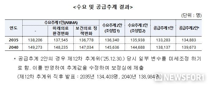 한편, 이날 보정심에 보고된 수급추계 결과는 다음과 같다.