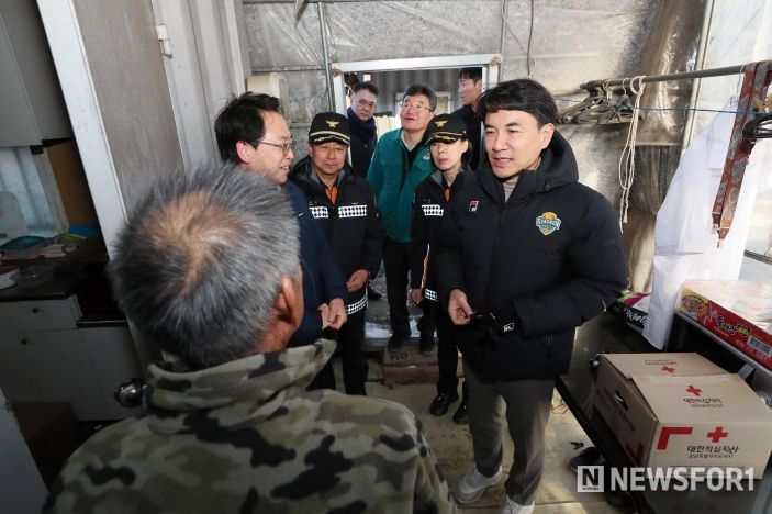뉴스포원(NEWSFOR1) 윤경덕 기자 | 김진태 강원특별자치도지사는 1월 13일 밤부터 도내 한파주의보가 발효될 전망에 따라 춘천시 신동면에 위치한 비주택 주거지를 방문해 주거환경 취약계층의 겨울철 안전대책을 점검했다.