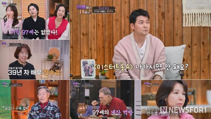 뉴스포원(NEWSFOR1) 유장훈 기자 | TV CHOSUN '아빠하고 나하고 시즌3'에 39년 차 배우이자 ‘뮤지컬계 대모’ 전수경이 새로운 딸 대표로 등판, 나이 의혹을 부를 만큼 건강한 97세 아버지와 함께하는 일상을 공개한다.