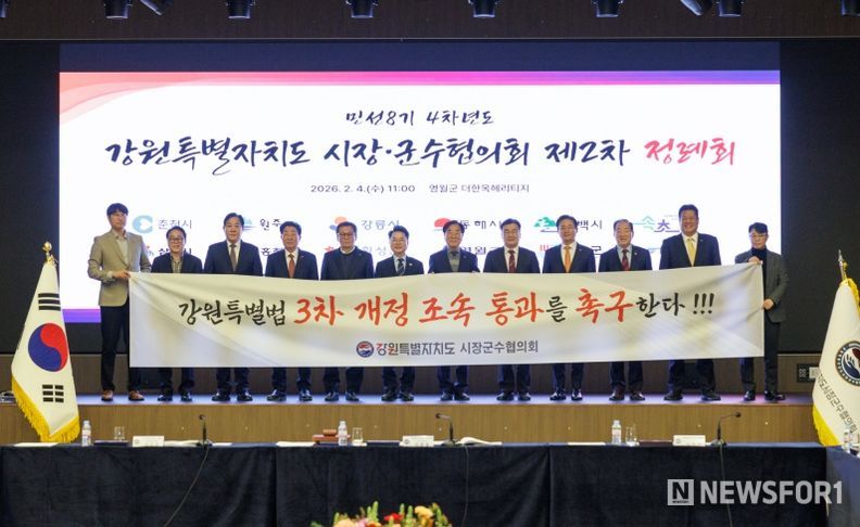 뉴스포원(NEWSFOR1) 윤경덕 기자 | 강원특별자치도시장군수협의회는 2026년 2월 4일 오전 11시, 영월군 ‘더 한옥헤리티지 영빈관’에서 민선8기 4차년도 제2차 정례회를 개최하고 각 시·군의 주요 현안에 대하여 심의하고 대응책을 논의했다.