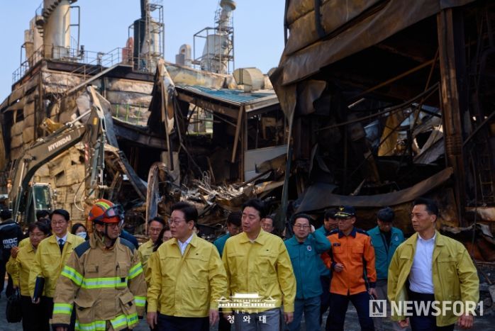 화재 현장을 둘러본 이 대통령은 화재가 빠르게 확산된 원인을 물으며 실종자 3명에 대한 수습과 함께 신속한 신원 확인을 지시했다.