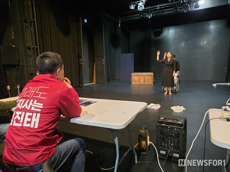 이날 방문한 극단은 창작극을 중심으로 활동하며 지역사회에 활력을 불어넣고 있는 예술 단체로, 2026년 문화예술인 창작활동 지원사업에 선정된 곳이다. 김 후보는 땀흘리며 맹연습 중인 단원들을 격려하며, 지역 예술인들이 자부심을 느끼고 창작에만 매진할 수 있는 환경을 조성하겠다고 약속했다.