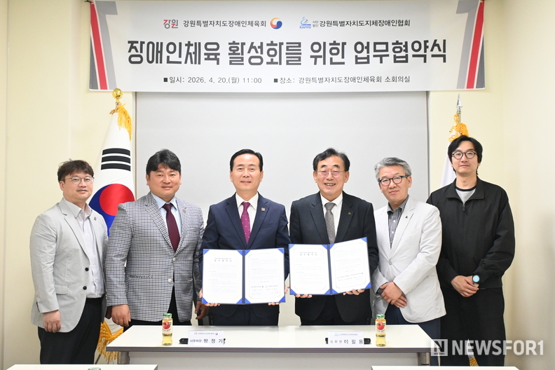 강원특별자치도장애인체육회는 장애인의 날인 4월 20일(월) 소회의실에서 강원특별자치도지체장애인협회와 장애인체육 활성화를 위한 업무협약을 체결했다.