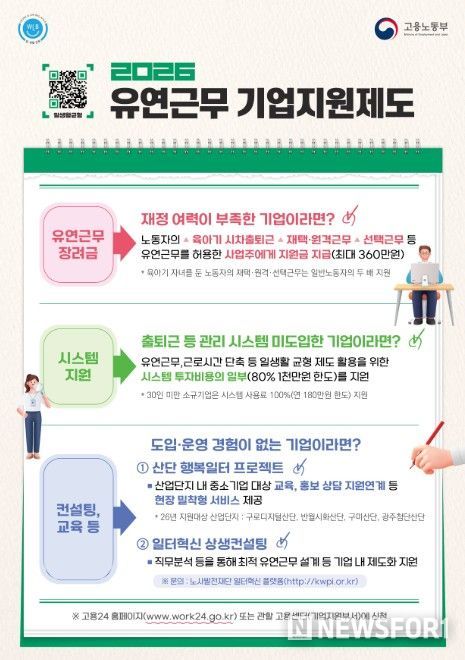 다만, 중소기업의 경우 인력 운영 부담, 시스템 구축 비용, 보안 문제 등으로 유연근무 도입과 활용에 어려움이 있는 것도 현실이다. 이에 정부는 기업 여건에 맞는 맞춤형 지원을 통해 민간 확산을 적극 뒷받침하고 있다.