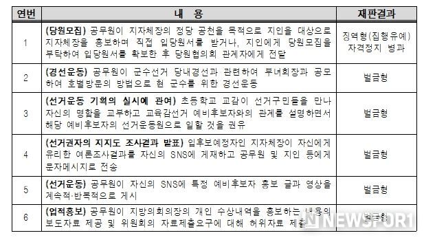 뉴스포원(NEWSFOR1) 윤경덕 기자 | 중앙선거관리위원회는 제9회 전국동시지방선거를 앞두고 공무원의 선거관여행위가 발생하지 않도록 중앙행정기관에 주요 위반사례를 재차 안내하고, 예방활동을 강화하여 줄 것을 요청하는 공문을 4월 30일 발송했다고 밝혔다.