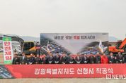 뉴스포원(NEWSFOR1) 윤경덕 기자 | 강원특별자치도는 3월 30일 오전 11시 춘천시 동내면 고은리 일원에서 ‘강원특별자치도 신청사 착공식’을 개최했다. 착공식에는 김진태 도지사를 비롯해, 한기호 국회의원(춘천‧철원‧화천‧양구을), 김시성 도의장, 신영재 홍천군수, 이병선 속초시장, 이상호 태백시장, 양양부군수, 지역 주민대표 등 1천여 명이 참석했다. 신청사 건립사업은 약 5,000억 원 사업비가 투입되며, 도민 중심의 복합행정문화공간으로 조성된다. 신청사는 약 10만㎡ 부지에 지하 2층, 지상 9층 규모로 건립되며, 다목적 강당과 전면 광장, 옥상정원 등을 갖춰 도민이 언제나 찾아와 소통하고 이용할 수 있는 열린 공간으로 조성된다. 특히 기존 청사의 주요 불편사항으로 지적됐던 주차난 해소를 위해 1,600대 이상 수용 가능한 주차공간을 확보하는 등 도민 편의 증진과 행정 효율성 제고를 동시에 고려한 스마트 청사로 건립된다. 도는 이번 부지 조성 및 진입도로 등 기반시설 공사를 시작으로 올해 하반기 본격적인 건축공사에 착수해 2029년 준공을 목표로 사업을 추진할 계획이다. &