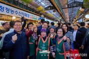 뉴스포원(NEWSFOR1) 윤경덕 기자 | 이재명 대통령은 30일 오후 제주 타운홀미팅 '제주의 마음을 듣다' 종료 후, 김혜경 여사와 함께 1박 2일 제주 일정의 마지막 일정으로 동문시장을 방문했다. 동문시장은 제주시 도심에 위치한 대표적인 전통시장으로, 대통령 부부의 방문 소식에 상인들과 방문객들은 놀라움 속에 환호와 박수로 이들을 맞이했다. 입구에 서 있던 한 외국인 관광객은 어디서 왔냐는 이 대통령의 질문에 “오스트레일리아”고 답하기도 했다. 이 대통령 부부는 셀카촬영과 악수를 이어가며 과일모찌 가게에 들러 온누리상품권으로 한라봉모찌와 딸기모찌를 구입해 즉석에서 강유정 대변인, 하정우 수석 등과 함께 시식했다. 이동 내내 이어지는 셀카요청에도 이 대통령 부부는 반갑게 응했다. 그러자 시장을 찾은 많은 도민들은 이동 중인 이 대통령 부부를 향해 "사랑해요", "와 대박", "화이팅"을 외치는 소리로 화답했다. 이 대통령은 특히 어린이들의 사진 요청에 적극적으로 답했다. "애기 있어요"라는 소리가 들리면 발걸음을 멈추고 아이들과 하이파이브를 하거나 반갑게 셀카를 찍었다.