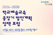 뉴스포원(NEWSFOR1) 편집국 기자 | 서울특별시교육청은 ‘예술로 잇다, 감성을 품다, 미래를 열다’를 주제로 10월 30일, 제2서울창의예술교육센터에서 『2026~2030 학교예술교육 중장기 발전계획 비전 선포식』을 개최한다. 선포식은 ‘AI 아트랩 서울’건립을 통해 미래형 예술교육의 새 장을 여는 서울시교육청의 비전을 공유하는 자리로, 예술교육 분야 교수 및 전문가, 학생, 학부모, 초‧중‧고‧특수 교원 등 200여 명이 참석할 예정이다. 서울시교육청 2026~2030 학교예술교육 중장기 발전계획은 ‘예술이 일상이 되는 학교’를 비전으로 제시하고, △'미래역량 기반 학교예술교육' △'마음을 채우는 서울예술교육' △'지역과 상생하는 예술생태계'의 세 가지 추진 전략을 통해 서울 학교예술교육의 발전 방향을 구체화했다. 이번 계획은 예술이 학생의 마음 성장을 돕는 교육적 힘이 되도록, 음악·미술·연극·영화·뮤지컬 등 다양한 예술교육 경험을 통해 정서적으로 어려움을 겪는 학생도 예술로 마음을 채우고 성장할 수 있도록 지원하는데 중점을 두고 있다. 나아가 모든 학생이 예술을 누리며 일상에서 직접 예술을 경험할