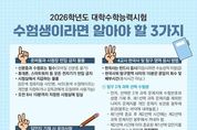 뉴스포원(NEWSFOR1) 편집국 기자 | 서울특별시교육청은 11월 13일에 실시되는 2026학년도 대학수학능력시험 세부 시행계획을 발표했다. 서울시교육청은 11개 시험지구, 228개 시험장에서 총 4,332개의 시험실을 운영한다. 경증시각, 중증시각, 중증청각, 뇌병변 등 운동장애 수험생을 위한 시험편의제공 시험장은 4개교에서 운영되며, 지난해에 이어 남부교도소 내 별도 시험실도 운영한다. 시험실 감독관을 비롯한 시험 관계요원은 총 1만 9,793명에 달한다. 또한 수험생들이 유의사항을 쉽게 이해하고 숙지할 수 있도록 동영상과 자료를 홈페이지를 통해 제공하고, 수험생 예비소집 시 '수험생 유의사항' 유인물을 배부할 예정이다. 특히, 부정행위 예방을 위해 감독관 대상 교육을 사전에 반복 실시하는 등 수험생과 감독관 모두가 공정하고 안정된 환경에서 시험을 치를 수 있도록 준비하고 있다. 서울시교육청은 방송 및 시설 점검을 강화하고, 지침을 보완하여 시험 관계요원 교육 시 관련 내용을 더욱 철저히 안내하는 등 2026학년도 대학수학능력시험이 안정적으로 시행될 수 있도록 관계 기관과 함께 최선을 다할 예정이다. &n