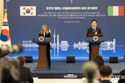 뉴스포원(NEWSFOR1) 윤경덕 기자 | 이재명 대통령은 19일 조르자 멜로니 이탈리아 총리와의 정상회담 뒤 "저와 멜로니 총리는 전략적 동반자 명칭에 부합하는 미래지향적 수준으로 양국 관계를 더욱 발전시켜 나가기로 합의했다"고 밝혔다. 이 대통령은 이날 청와대에서 멜로니 총리와의 정상회담 후 '공동 언론 발표'에서 이같이 말했다. 이 대통령은 "교역 분야 협력은 양국 경제규모와 브랜드 파워에 걸맞은 수준으로 더욱 확대하기로 했다"며 "이를 위해 양국 기업이 참여하는 한-이탈리아 비즈니스 포럼을 새 기회 창출의 장이자 기업 애로 상담 창구로 활성화하는 데 뜻을 모았다"고 밝혔다. 이어 "특히 중소기업 생태계가 잘 발달한 이탈리아의 강점을 바탕으로 중기 육성과 지원에 관한 협력도 함께 추진해 나갈 것"이라고 말했다. 이 대통령은 또 "국가 미래가 달린 과학분야 협력이 더욱 확대될 것"이라며 "기초응용분야 공동연구지원을 통해 역량 있는 연구자를 지속 발굴하고 인공지능, 우주항공 같은 첨단산업으로 협력의 지평을 더욱 넓혀가겠다"고 밝혔다. 이어 "방산 분야에서도 서로 강점에 기초해 상호 보