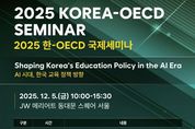 뉴스포원(NEWSFOR1) 윤경덕 기자 | 교육부는 한국교육개발원(원장 고영선)과 함께 12월 5일, 서울에서 한-경제협력개발기구(OECD; Organisation for Economic Co-operation and Development) 국제토론회(세미나)를 개최한다. 한-경제협력개발기구(OECD) 국제토론회(세미나)는 최신 교육 동향을 탐색하고 미래 교육에 대한 방향을 모색하기 위해 1999년부터 매년 개최되고 있다. 올해는 특히 「글로벌 인공지능(AI) 인재 양성 및 교육 포럼(2025 Global AI Talent & Education Forum, 2025 GATE Forum)」과의 연계 개최를 통해 인공지능 시대 교육 정책에 대한 논의를 한층 확장할 예정이다. 이번 토론회(세미나)는 ‘인공지능(AI) 시대, 한국 교육 정책 방향’을 주제로 진행된다. 인공지능(AI) 등 기술의 발전에 따른 교육 현장의 변화에 대응한 안전하고 책임 있는 기술 활용 원칙과 미래 교육체계의 재설계 방향을 찾는 국제협력의 장이 될 전망이다. 기조강연은 스테판 뱅상-랑크랭(Stéphan Vincent-Lancrin) 부센터장(