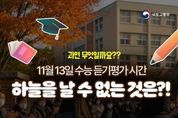 뉴스포원(NEWSFOR1) 편집국 기자 | 하늘을 날 수 없는 것들은? ■ 전면 통제대상 · 모든 항공기 이륙 금지 (비행 중 항공기 → 3km 이상 상공에서 대기) · 헬기 · 경량항공기 그리고 초경량 비행장치(드론 포함) 모두 STOP! * 예외: 비상·긴급 항공기 영어 듣기평가에 방해가 되는 '항공기소음 최소화' ■ 언제 통제되나요? 11월 13일(목) 13:05~13:40(총 35분) ※ 듣기평가 전·후 5분 포함 수험생에게 조용한 하늘을! 국민 여러분의 협조를 부탁드립니다.
