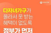 뉴스포원(NEWSFOR1) 편집국 기자 | ■ 다자녀가구가 몰라서 못 받는 혜택이 없도록 정부가 먼저 챙겨드립니다! ▷ 혜택알리미 - 내가 몰라도 찾아서 알려주는 개인 맞춤형 알림 서비스 · 다자녀 국가장학금 · 사회적 배려대상자 도시가스요금 경감 · 전기 요금 복지할인 · 에너지복지요금 지원 · 다자녀가구 자동차취득세 감면 ※ 소득, 거주지 등 개인별 상황에 따라 받을 수 있는 혜택은 달라질 수 있어요. ■ 청년이 몰라서 못 받는 혜택이 없도록 정부가 먼저 챙겨드립니다! ▷ 혜택알리미 - 내가 몰라도 찾아서 알려주는 개인 맞춤형 알림 서비스 · 청년 일경험 지원 · 청년농 창업투자 심층 컨설팅 · 청년주택드림 청약통장 · 청년 월세 한시 특별 지원 · 청년 문화예술패스 지원 ※ 소득, 거주지 등 개인별 상황에 따라 받을 수 있는 혜택은 달라질 수 있어요. ■ 어르신이 몰라서 못 받는 혜택이 없도록 정부가 먼저 챙겨드립니다! ▷ 혜택알리미 - 내가 몰라도 찾아서 알려주는 개인 맞춤형 알림 서비스 · 65세 이상 폐렴구균 국가예방접종사업 · 노인 무릎인공관절 수술 지원 · 노인 일자리 및