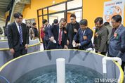 뉴스포원(NEWSFOR1) 윤경덕 기자 | 강원특별자치도는 강원형 K-연어 생태계 조성의 첫 단계로 2월 26일(목) 10시 10분, 도 내수면자원센터에서‘K-어린연어생산센터 준공식’을 개최했다. 이날 행사에는 김진태 도지사, 해수부, 관련 단체, 도의원 등 100여 명이 참석하며, K-연어산업 비전과 본격 가동계획을 발표했다. K-어린연어생산센터는 총사업비 60억 원(국비 30억 원, 도비 30억 원)이 투입된 사업으로, 해양수산부 주관‘친환경양식어업육성사업’공모에 선정돼 건립됐다. 센터는 연면적 1,599㎡, 지상 2층 규모로 순환여과시스템 7개 모듈 사육조 30개, 부화실, 실험실, 분석실 등을 갖추고 있으며, 연간 5g급 연어 종자 200만 마리 생산이 가능하다. 도는 센터에서 생산한 건강한 연어 종자를 도내 내수면 양식어가에 공급하고 양식어가는 이를 100g급 스몰트로 성장시킨 뒤, 해수양식 산업단지에서 5kg급 성어로 키워 최종 출하하는 단계별 생산체계를 구축할 계획이다. 도는 앞서, 국내 지방자치단체 최초로 연구용 발안란을 도입, 담수에서 부화율 97% 이상을 달성하고 2023년 어린연어(150g급) 생산에 성공했다. 이 가운데 2천 마리를 도